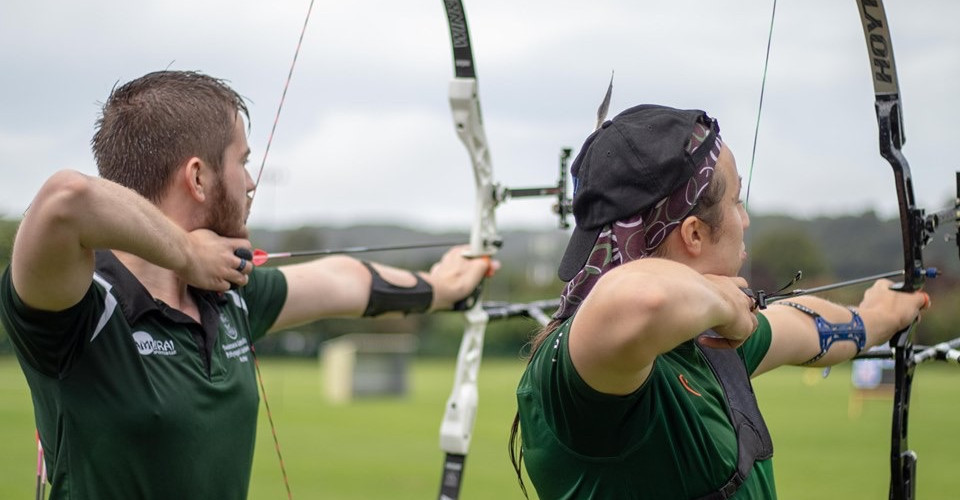 Great fun was had by all at a wet and windy SWWU Summer Slam this weekend! In the men’s recurve category, Thomas Ledgerwood (Exeter) stormed to first place in the seedings with a score of 529, but was stopped in the semi finals by 4th seed, Gavin Tsang (Swansea), who took a 6-4 victory before going on to beat 3rd seed, Jamie Diep (Bristol) to take gold in the final 7-3. Surabhi Desai (Exeter) won the women’s recurve event with a 6-0 victory over Kellie Petinger (Bristol). Arden Roach (Aber) won the men’s barebow category, seeding 4th before beating 1st and 2nd seeds to take the gold, whilst in the women’s barebow, Rachel Osman (Exeter) seeded 2nd before upsetting 1st seed, Aubrey Whitish (Swansea) 7-1 to finish top. And it an all-Swansea men’s compound final, with William Shackley pipping William Murphy to the top spot 136-129.